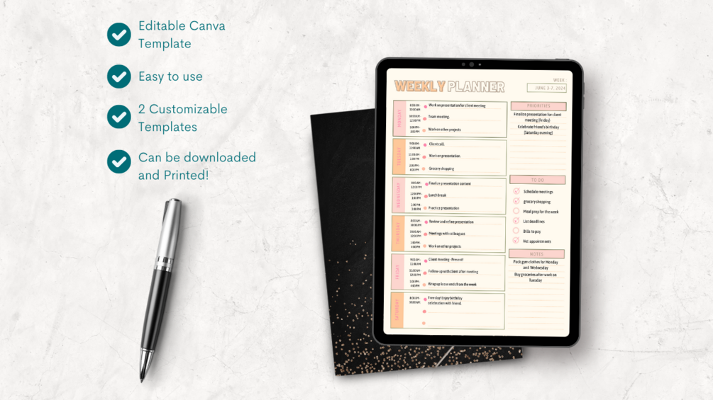 Digital and Printable Weekly Planner | Editable on Canva